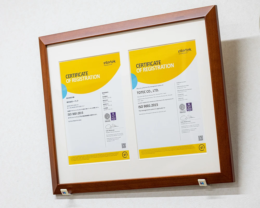 その一環として、2005年12月にISO 9001:2000の認証を取得し、以降も時代の変化とともに規格改訂に対応しながら、品質管理体制の強化を強化し続けています。