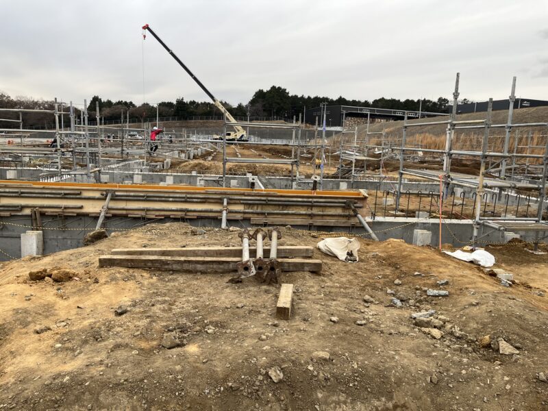 これをもって地面の下の主要な工事が一段落し、来月からは地上部分の鉄骨組み立て(建て方)に向けた準備が本格化します。