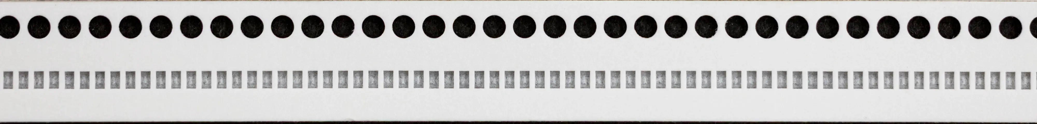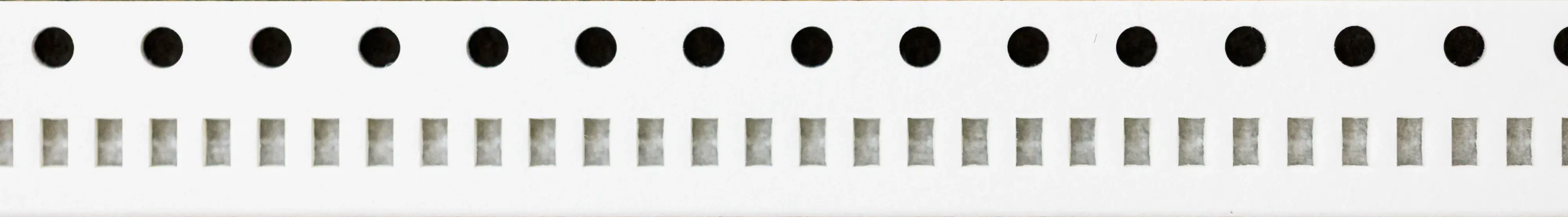 プレスポケット成形は台紙角穴形状も打抜き品に比べ、バリ、毛羽の発生状態を低減、台紙形状の品質向上を実現し、小型/極小部品の実装率を確実に向上させます。